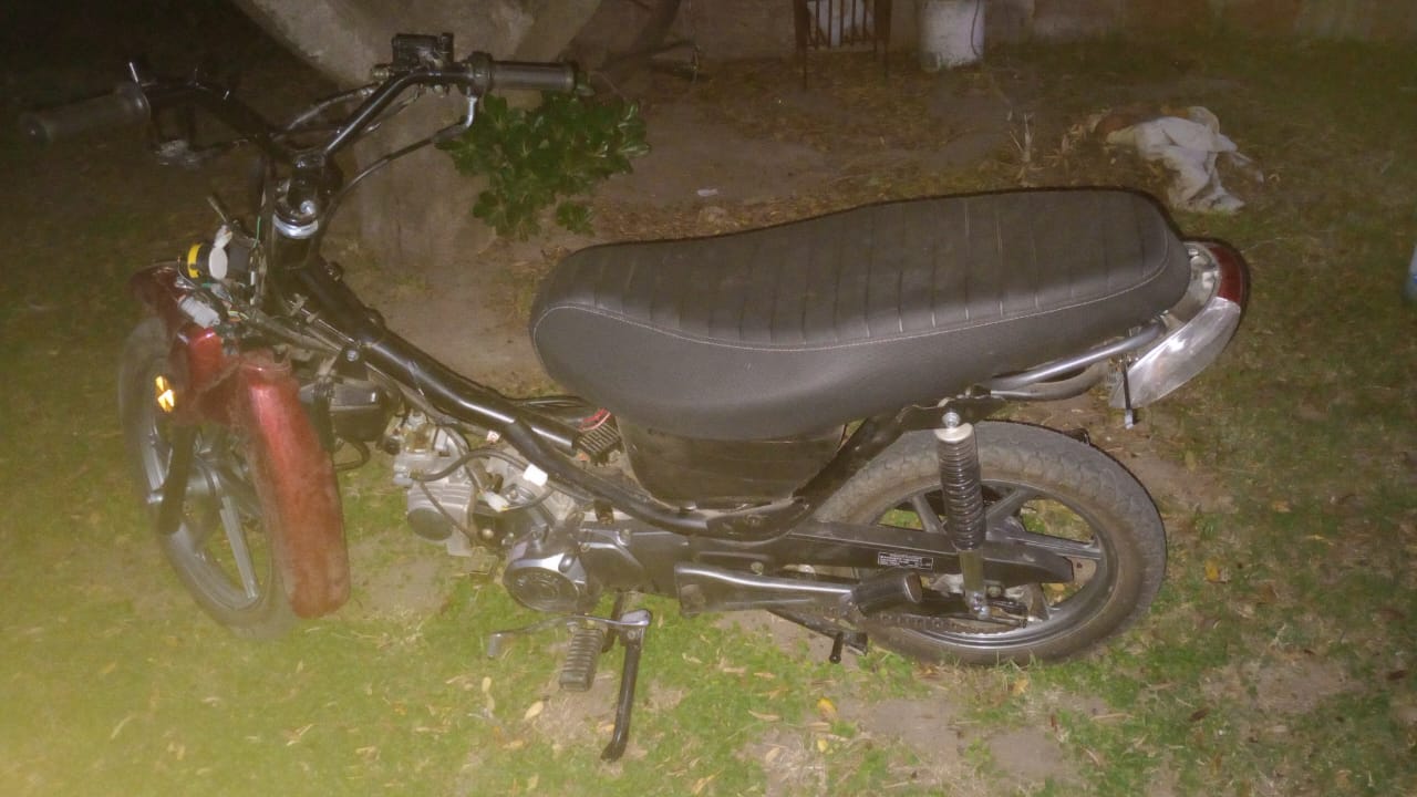 Sale uno de los chicos y le indica el lugar donde la moto estaba, van a buscarla no le encuentran y con la mamá que los acompañó vuelven, la madre ingresa a la casa hace salir a otro de los chicos y el otro nunca salió que es el más grande y supuestamente el responsable mayor, con el chico van al lugar donde le dice que está la moto la buscan y mi hijo la encuentra tirada entre los pastizales, toda rota y solamente con un plástico, los otros ninguno, todo roto en el sistema de arranque, el velocímetro, bueno la destrozaron prácticamente así que la la dejo en Isla Verde de gente conocida.