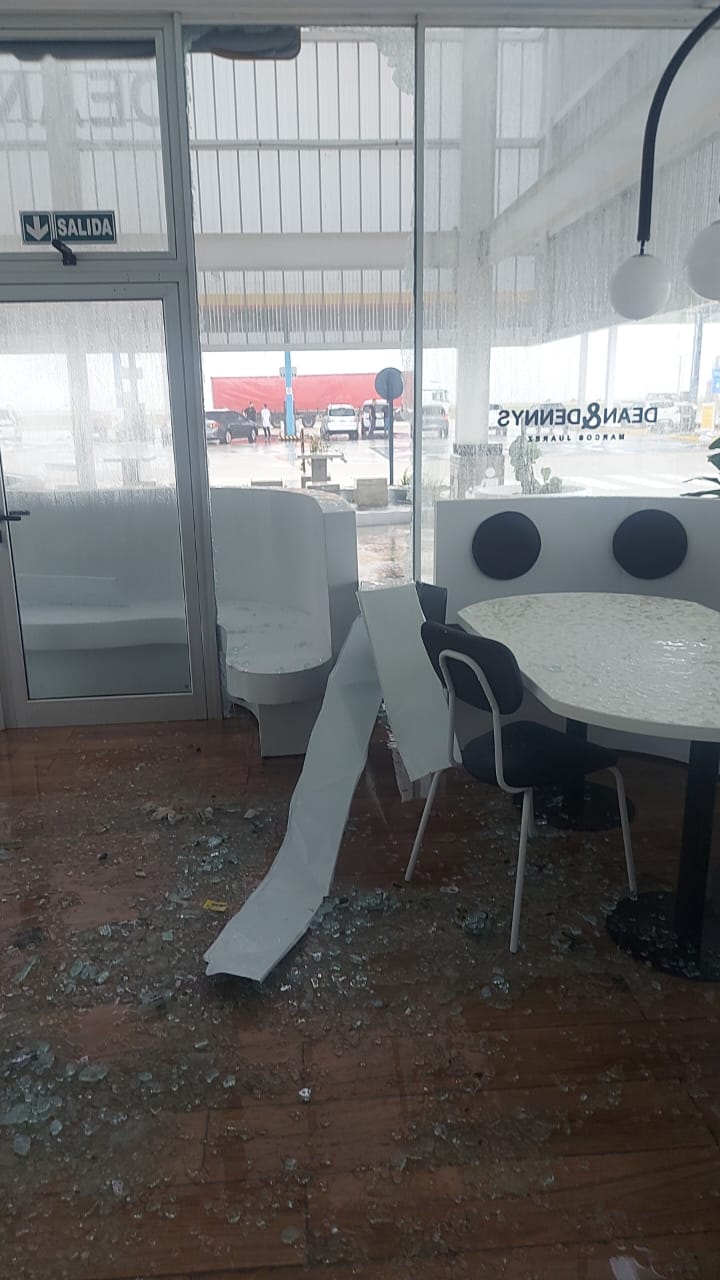 La tormenta generó destrozos en la estación de servicios Shell que se encuentra en la Autopista, mano hacia Rosario. En el lugar, a consecuencias del viento y las piedras, produjo que el cielorraso del área de abastecimiento se volara y afectara a motocicletas.