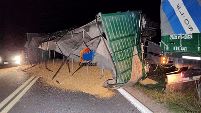 Volcó un acoplado y derramó la carga