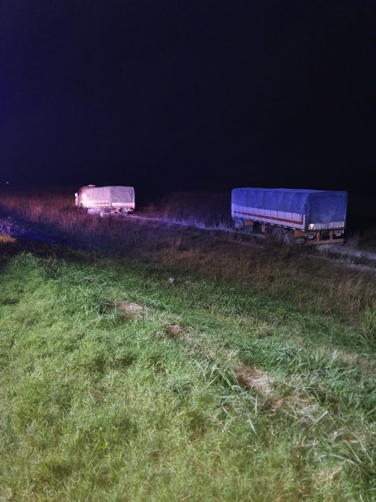 Volcó un acoplado y derramó la carga